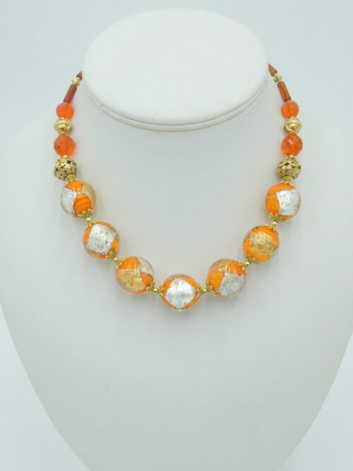 - Collier composé de pâte de verre d'Italie, de citrines et de cornalines. Poids : 98 g / Longueur : 47 cm.