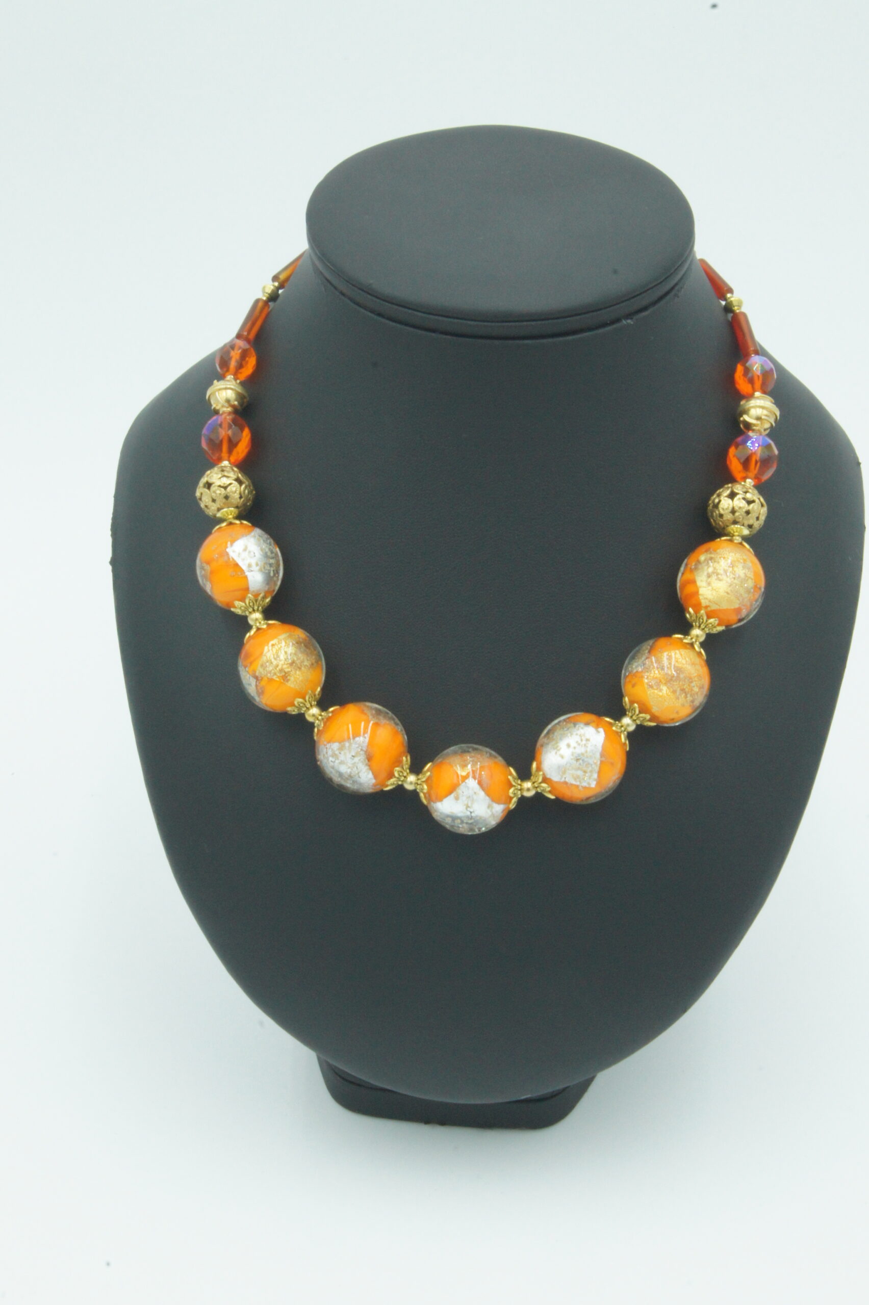 Collier composé de pâte de verre d’Italie, de citrines et de cornalines.